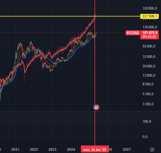 Nous sommes actuellement à 3,125 Bitcoin par bloc et passerons à 1,562 aux alentours d'Avril 2028, ce sera le 5ème halving. En d'autres termes, celui qui arrive à trouver la solution au problème, générera 3.125 Bitcoin et pourra ensuite l'échanger sur le marché secondaire et en retirer environ 300 milles dollars (à l'heure actuelle).